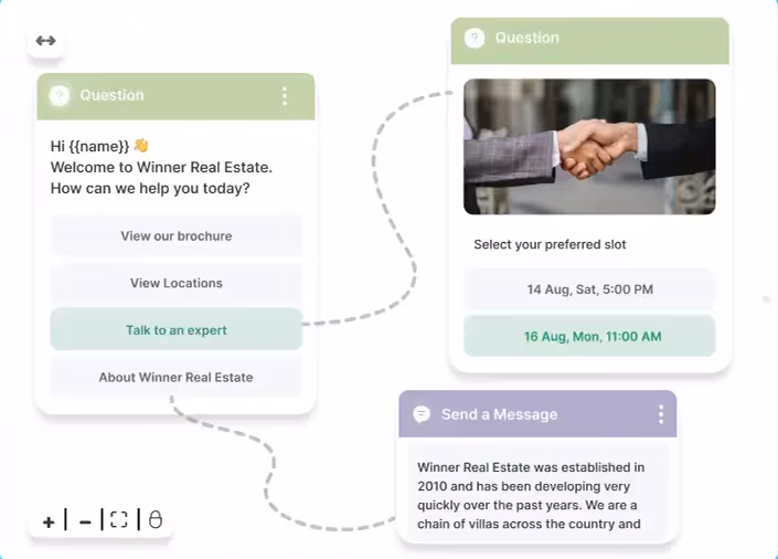 Customizable Automation Workflows Use drag-and-drop flows to build bots, manage follow-ups, and auto-tag leads.